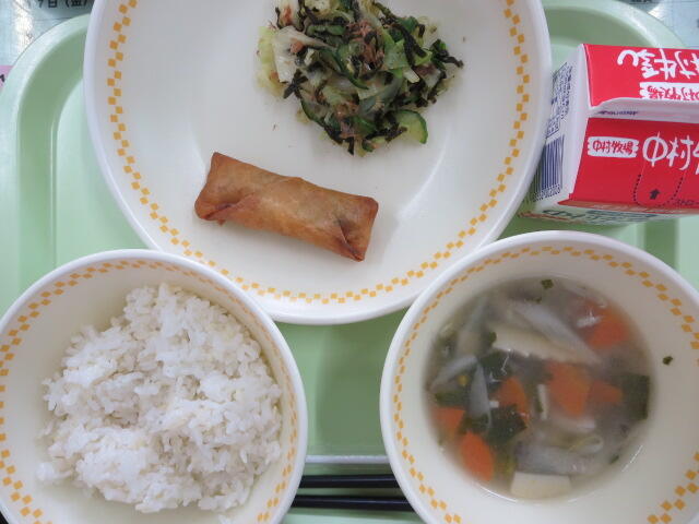 今日は揚げ春巻きでした。皮が焦げないように、調理員さんがおいしくあげてくださいました。教室でも「パリッ」とおいしい音がきこえていました