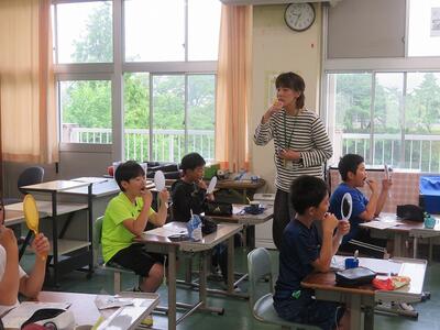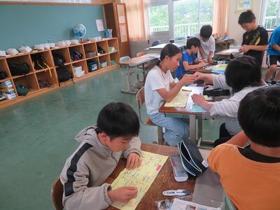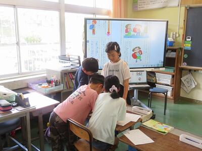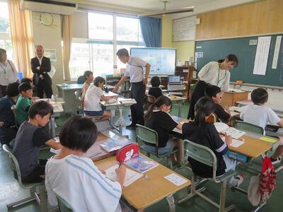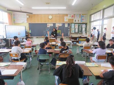 普段は、複式学級での指導を受けている児童もおり、今回は単式学級での授業を体験したり、他の小学校の児童と交流したりしながら楽しく学習に臨んでいました。