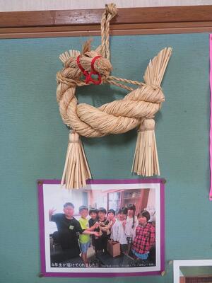 また、見学の際に学校へと来年の干支である「午(うま)」のわら細工を寄贈してくださいました。そのわら細工を4年生が校長室に届けてくれました。さっそく飾らせていただきました。