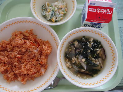 今日のキムタクごはんは、長野県の学校給食で開発されたメニューです。キムチとたくあんをごはんにまぜたまぜご飯です。