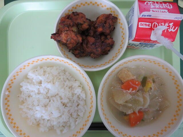 1月24日は学校給食記念日です。明治時代に山形県で始まった学校給食は、戦争の食料不足の中、給食を続けることができなくなり、一度中断されました。戦争が終わり、おなかをすかせていた子どもたちを助けようとアメリカから脱脂粉乳などがプレゼントされ、また給食を始められることになりました。今日はその給食記念日にちなんで、給食の始まりと言われるごはんと魚にしてみました。今の日本では、おなかがすいて食べものがない状況はほとんどありませんが、今でも世界の中には、十分に食べものが食べられない人もいるのです。感謝の気持ちを忘れないようにしましょう。