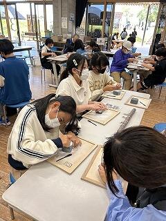 6年生 日之影町 小学校連合修学旅行 第1日目 勾玉作り体験