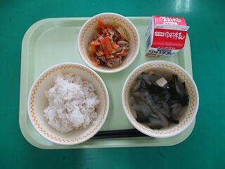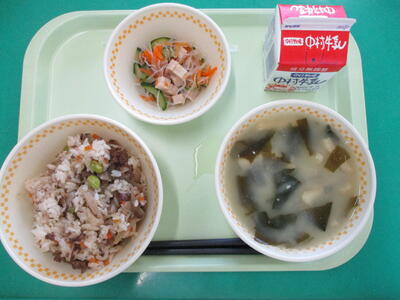 今日は「こどもの日」をお祝いする献立です。若竹汁の若竹とは、わかめとたけのこのことです。たけのこの成長はとても早く、十日ぐらいで竹になります。たけのこのようにすくすくと成長してもらいたいという願いを込めて今日の献立にしました。