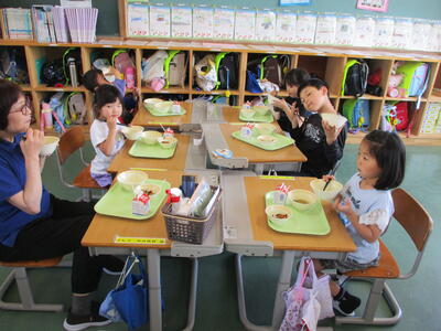 自己紹介をしたり、おすすめのお菓子を紹介したりと、とても楽しい給食時間を過ごすことができました。