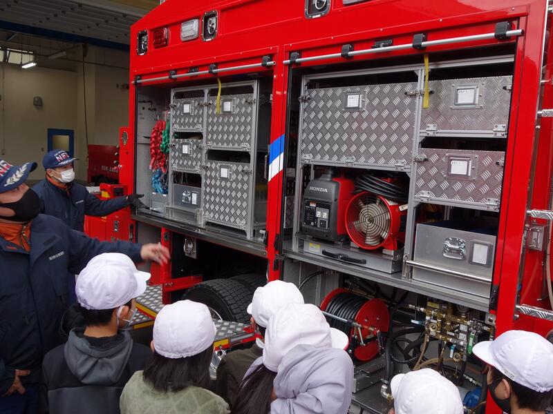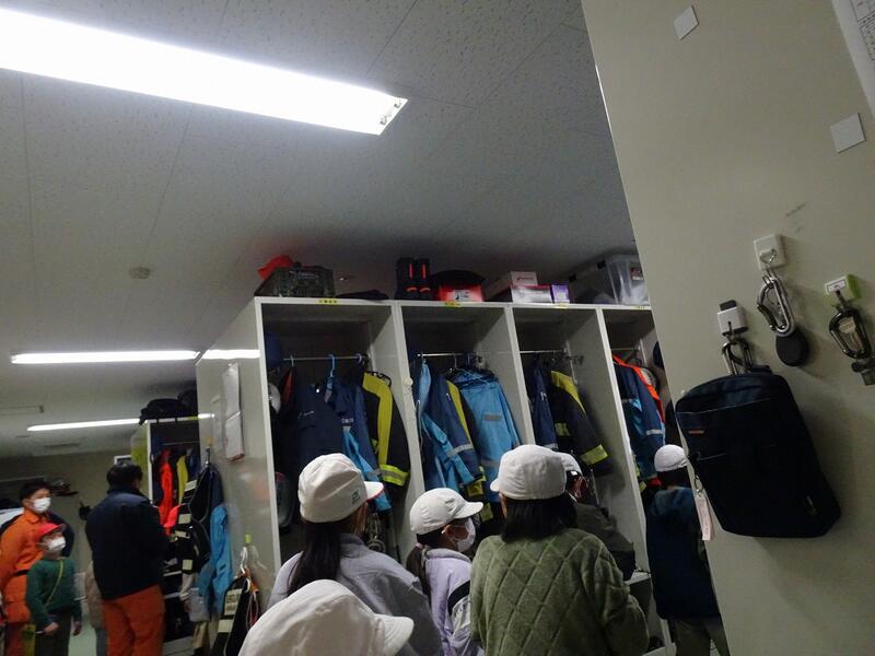 火事や災害に使用する服や道具、救急車、消防車なども見せていただき、すぐに出動できるひみつをたくさん教えていただきました。