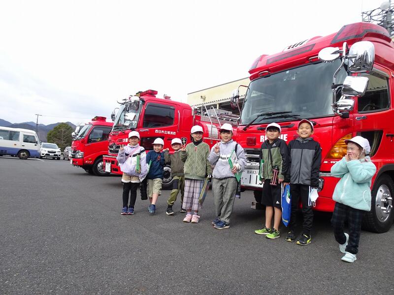 午前中に町内の3年生が合同で、高千穂町にある西臼杵広域消防署と高千穂警察署の見学に出かけました。