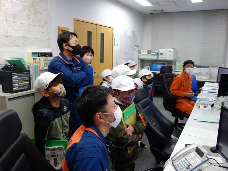 消防署では、様々な連絡が入ってくる通信指令室を見せていただきました。緊急時にすぐに対応できるように連絡体制が整っていました。
