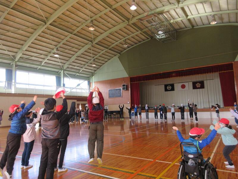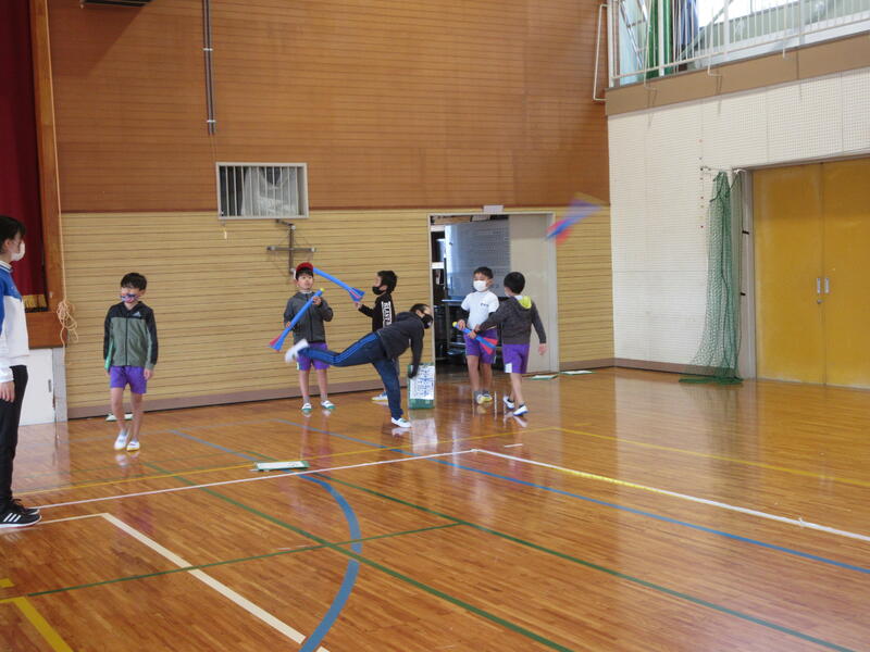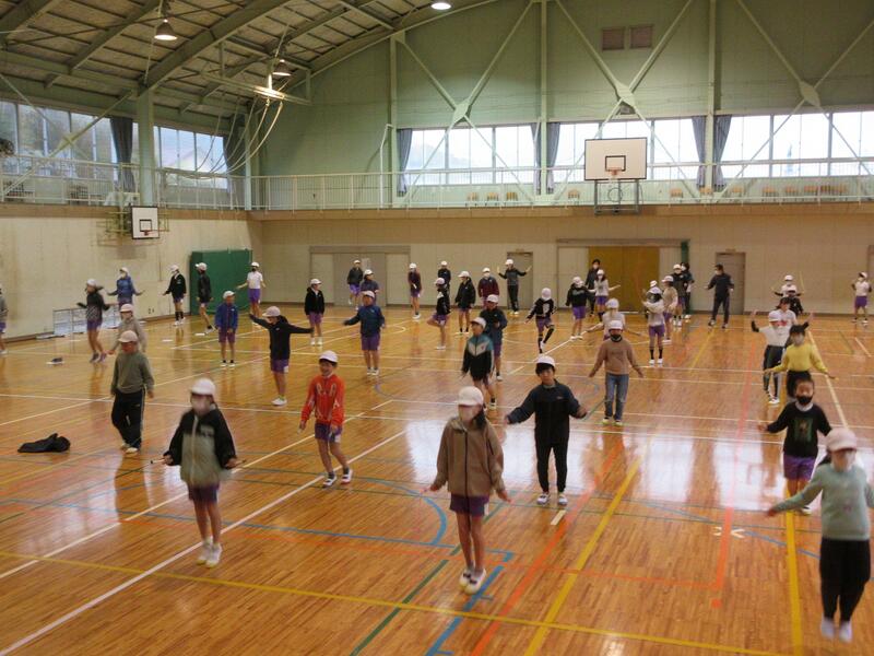 今朝の体育タイムは、雨のため体育館で実施しました。1月からなわとび練習を続けていることで、子どもたちもずいぶん技が上手になってきました。