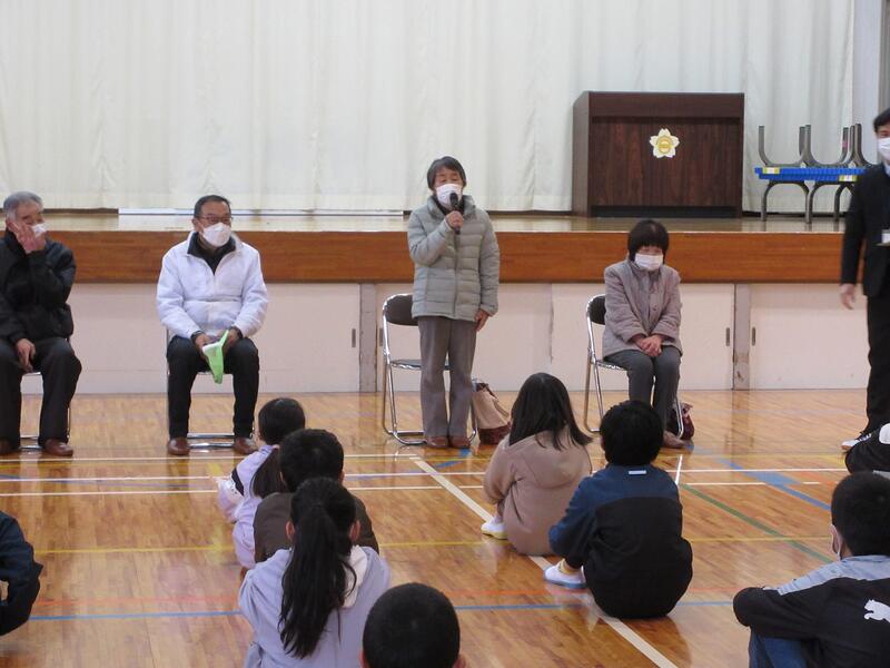 今日は5名の方が来てくださいました。校長先生からの紹介の後に、お一人ずつあいさつをしていただきました。