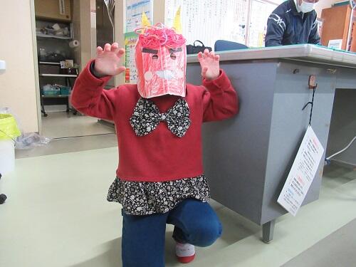 2月3日(金)は、節分の日です。今朝は、赤鬼・青鬼が職員室を訪問してくれました。
