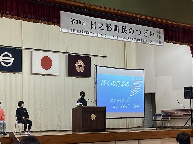 2月5日(日)に、宮水小学校の体育館を会場に、「町民のつどい」が開催されます。その中で、町内小中学生の代表者による意見発表が行われます。宮水小学校からも6年生が代表として参加をします。