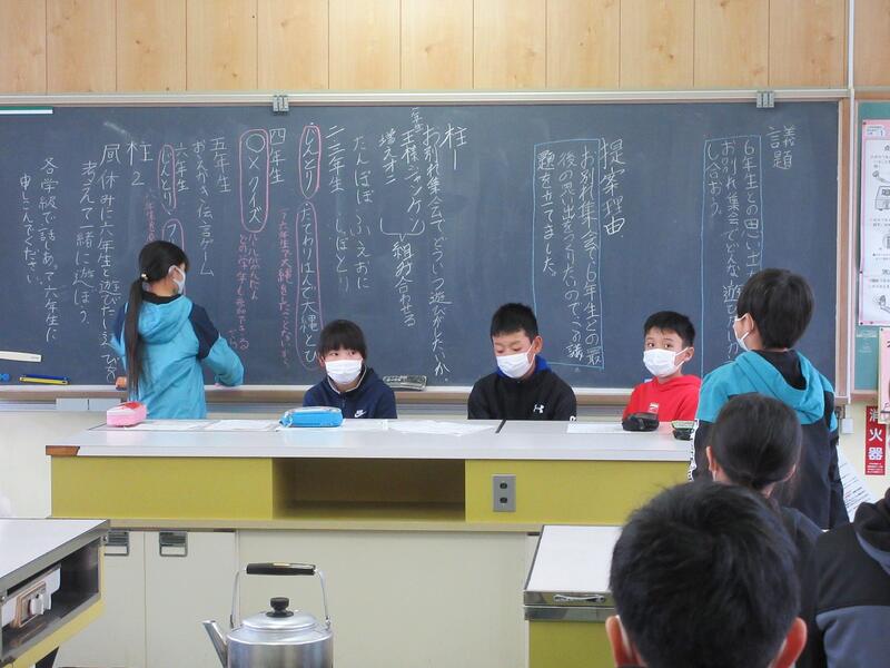 1年生も安全にできるか、ルールが分かりやすいか、感染対策ができるかなど、4,5年生も考えをしっかりと出し合って話合いを進めていました。思い出に残るお別れ集会ができると思います。