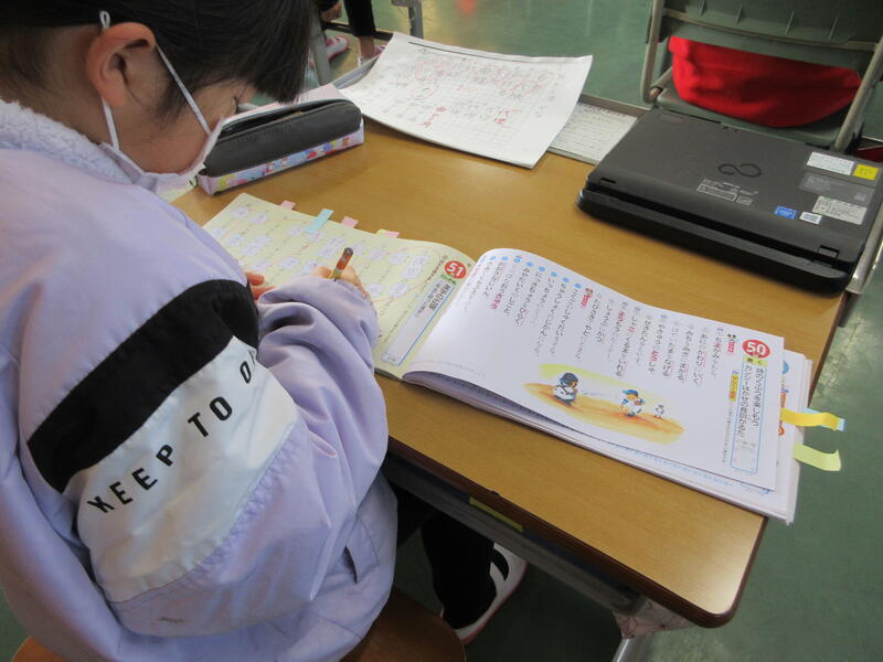 鉛筆や赤ペンなどの学習用具が整っているか、机の周りの整頓ができているか、ノートは丁寧に書いているか、など具体的な場面を振り返りました。