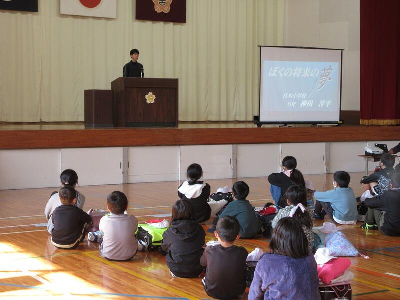原稿を見ずに、堂々と発表をする姿に下級生たちも真剣なまなざしで聞いていました。5年生は、来年自分たちが発表をする学年になるんだという気持ちで聞いていたことと思います。