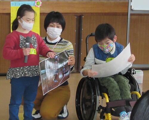 2月9日(木)、高千穂町自然休養村管理センターにて、第2回特別支援教育合同学習会がありました。初めに、レクリエーションを行いました。その後、各学校ごとに自己紹介がありました。珠々七さん、陸人さん二人とも、がんばっていることなどを上手に発表することができました。返事も大きな声でばっちりでした。会場からたくさんの拍手が沸き上がりました。