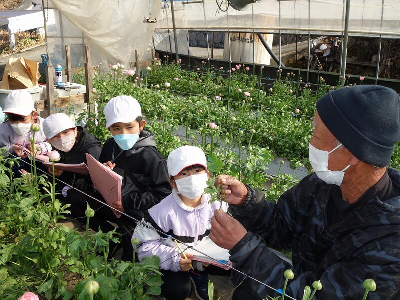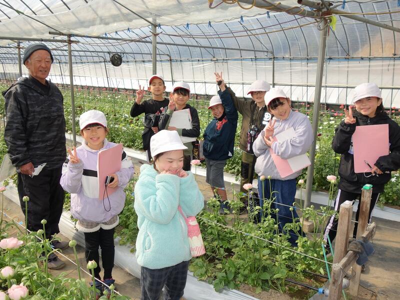 先日、3年生の児童が、地域でラナンキュラスなどの花を栽培している農家を見学させていただきました。
