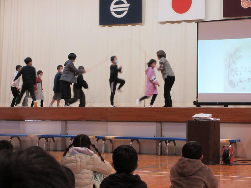 たんぽぽ学級の子どもたちや、4~6年生の子どもたちも、先生たちに本を読んでもらい、集中して話に聞き入っていました。