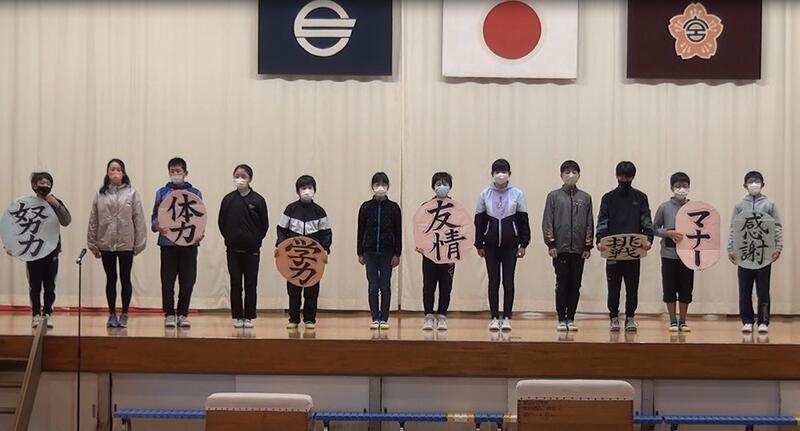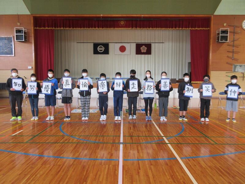 5年生からは、6年生一人一人をイメージした漢字一文字が送られました。どの字にもなるほどと感じる理由が添えられていて、受け取った6年生もこれまでの6年間を振り返ることができたと思います。