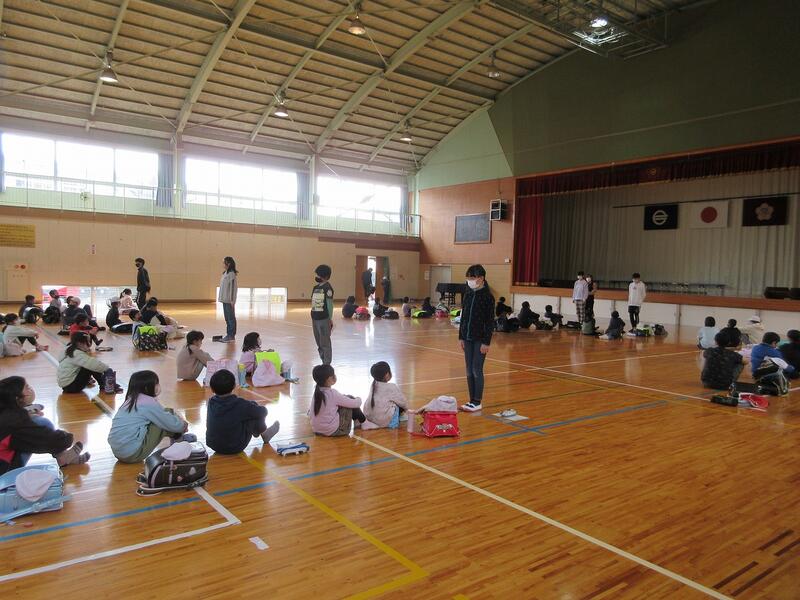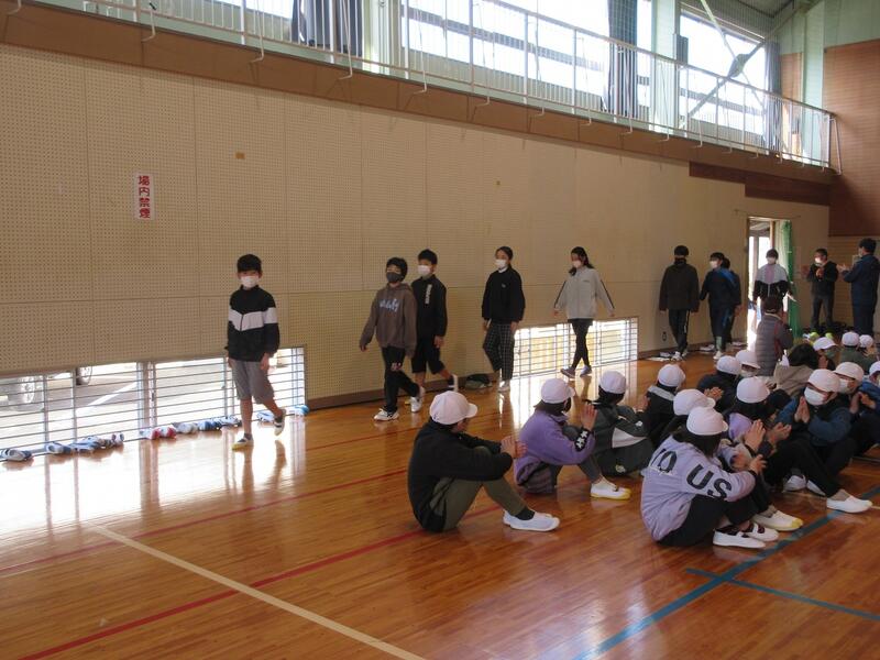 前回は外への避難でしたので約4分ほどかかりましたが、今日は2分49秒で体育館まで避難してきました。校長先生も「安全にすばやく行動できて大変良かった」と子どもたちに話をしました。