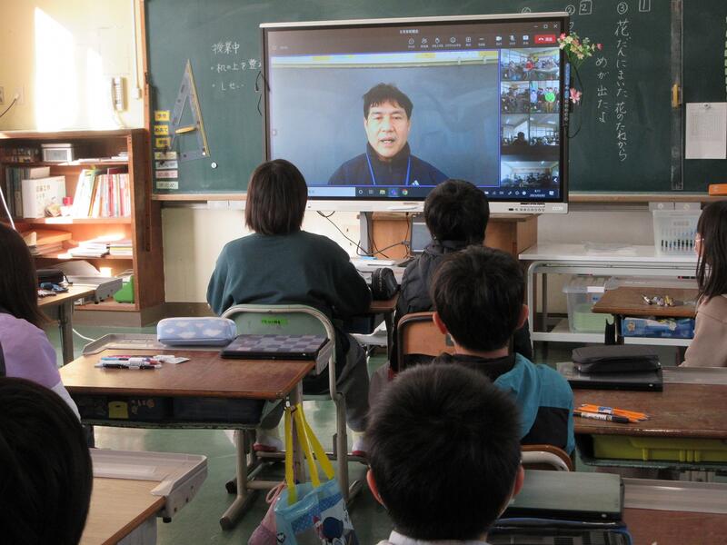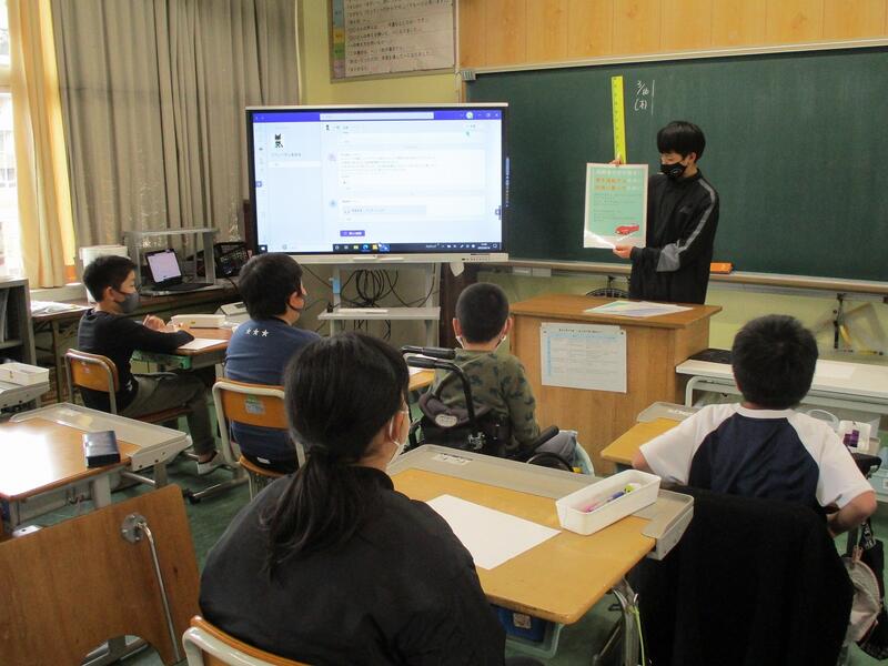 新型コロナ感染対策のため、直接お会いしての活動がなかなかできない中、なにか違った形で交流ができないかと6年生が考え、自分たちが使っているタブレットでオンライン交流をしました。