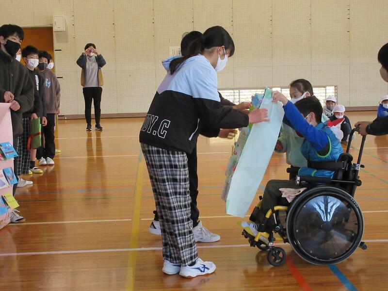 始めに、各学年から6年生へ、これまでの感謝の気持ちと卒業をお祝いするプレゼントがありました。
