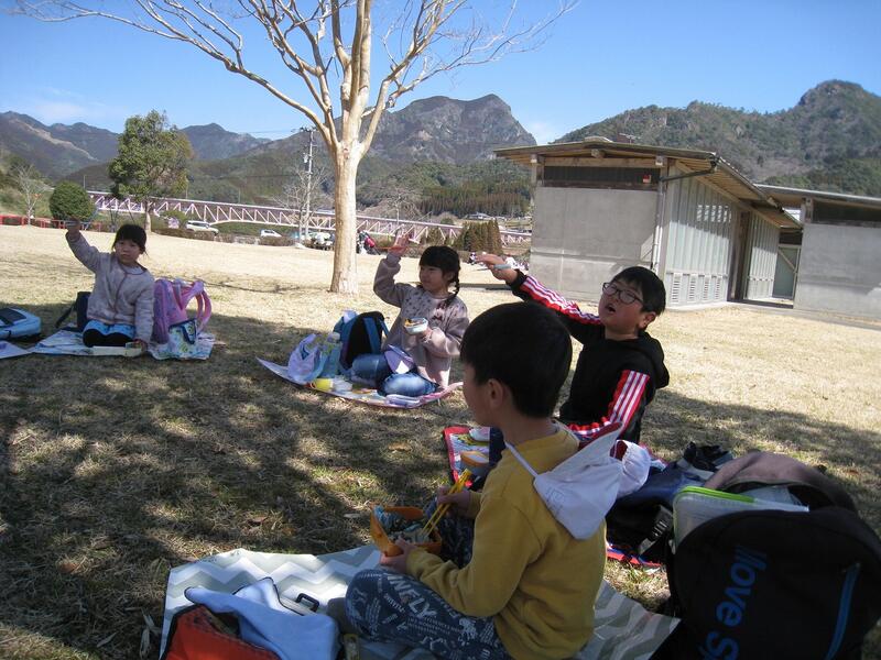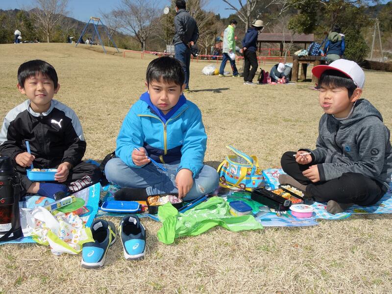 みんなおなかがぺこぺこだったようで、おうちの方たちが作ってくださったお弁当をすぐに広げると、とてもおいしそうに食べていました。外でみんなで食べるお弁当は最高ですね!