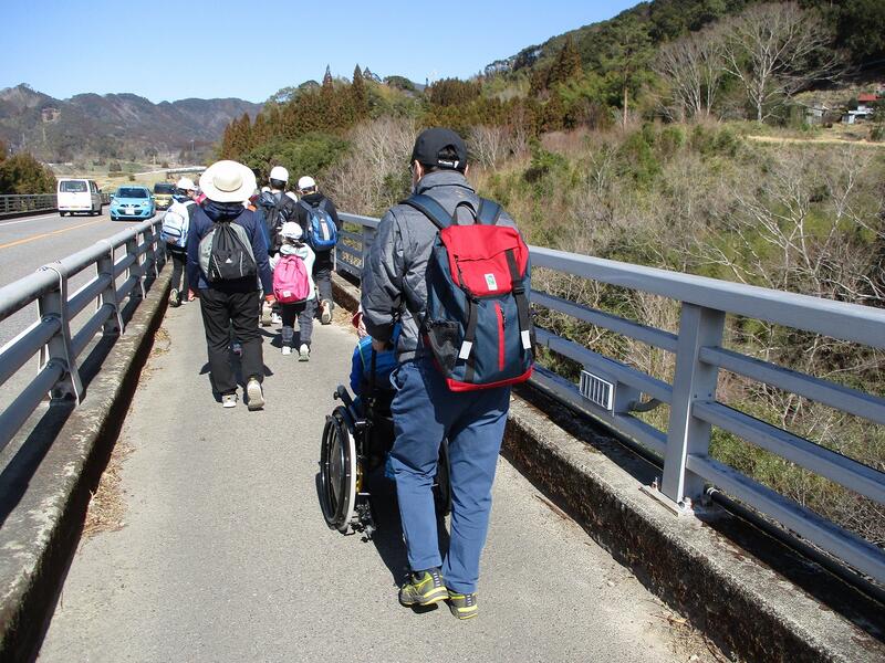 この日は天気も良く、青空が一面に広がっていて、子どもたちも日之影町の景色を楽しみながら目的地まで歩いて行きました。約1時間かけて癒やしの森公園に着き、ちょうどお弁当の時間になりました。