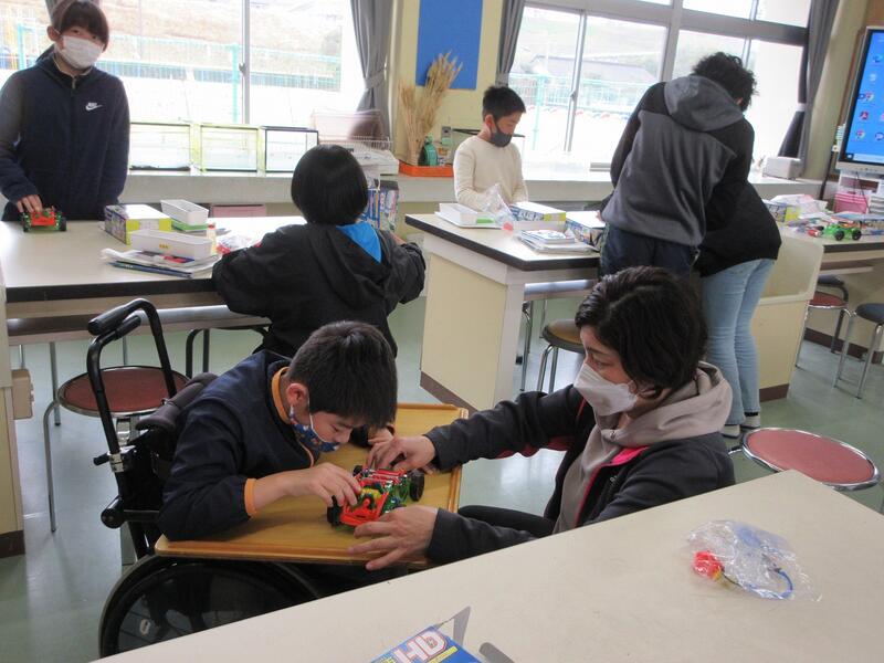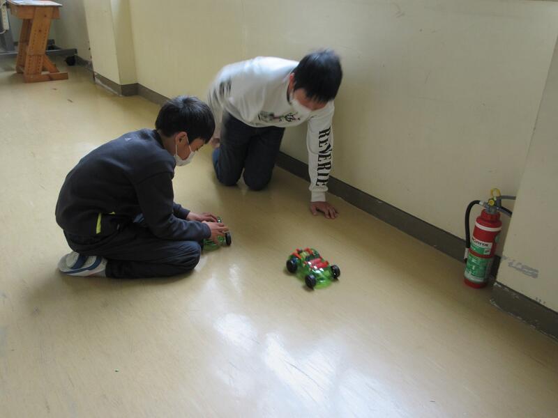 できあがった子どもたちは、さっそく車を走らせて楽しんでいました。作ったものがうまく動きとても嬉しそうでした。楽しみながらしっかりと学ぶことができたようです。