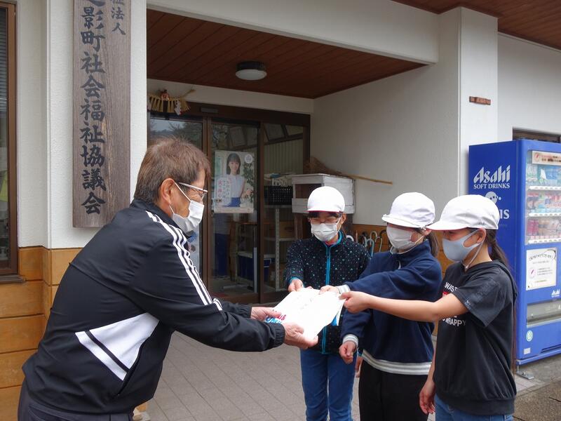先週まで募金活動を行い、運営委員会の児童が町の社会福祉協議会へ届けに行きました。集まった募金は、12,370円にもなりました。