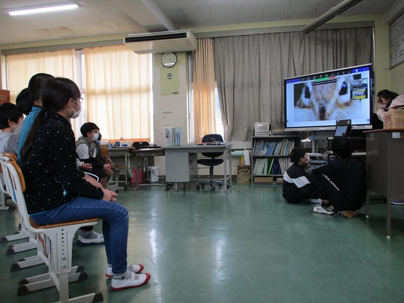 2、3年生は、動物の体の秘密や不思議について、写真を見ながら驚いたりうなずいたりして話を聞いていました。