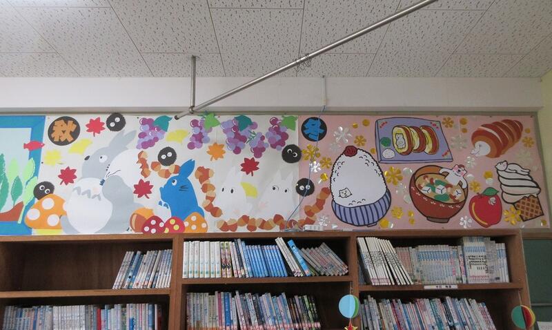 本のイラストを参考にして、自分ですべて手作りをされたということです。子どもたちも、夏はどんな掲示ができるのかなあと楽しみにしていました。図書室に来る子どももさらに増えることと思います。戸高さん、どうもありがとうございました。