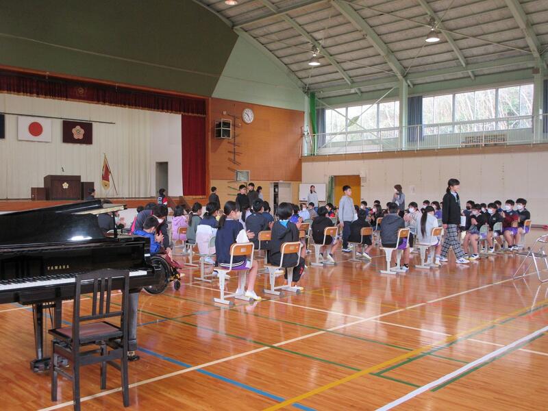 第2回目の卒業式練習を行いました。今回は、式の中での卒業生、在校生の動きや、呼びかけ・歌の一部を練習しました。