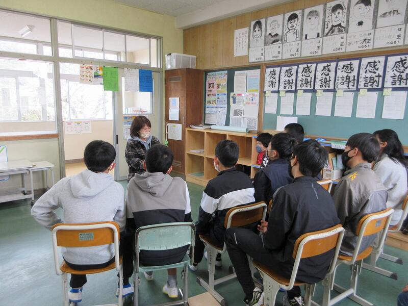 高千穂町での生活から北海道へ行き、農業をしていたことや、日之影町に戻ってからの生活など、これまでの経験をもとに職業観などを話してくださいました。中学校へ進学する子どもたちの心に残る内容だったと思います。