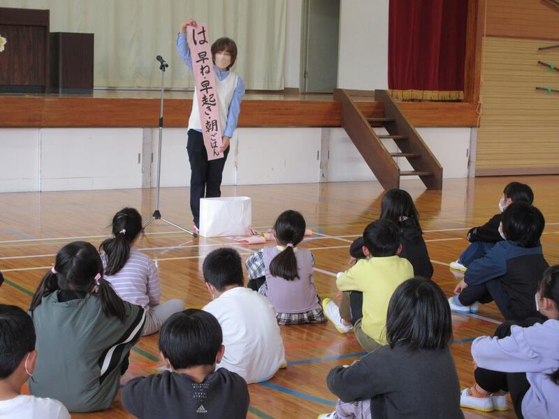 読み聞かせの方々は、毎週月曜日の朝の時間に学校に来ていただき、子どもたちも穏やかな気持ちで1週間のスタートを切ることができています。
