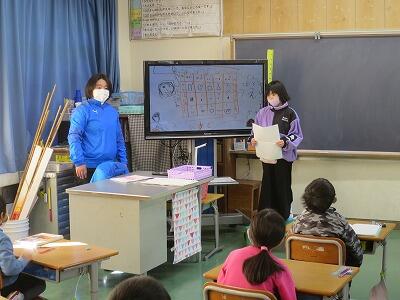 2年生は国語の時間に、自分が考えた遊び方を紹介する学習を行っていました。教材文「おにごっこ」で学習した文と文をつなぐ言葉を上手に使って説明できていました。