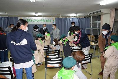 子ども達はみどりの少年団の制服をとてもうれしそうに身に付けていました。これからの活動が楽しみですね。