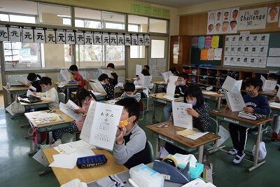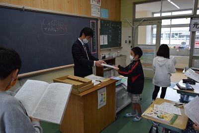 3年生の教室では通知表を渡していました。先生から「この通知表が君たち全てをあらわしたものではないけど、精いっぱい考えました。」「自分ががんばったところ、文章のところもしっかり読んでください。」という話がありました。
