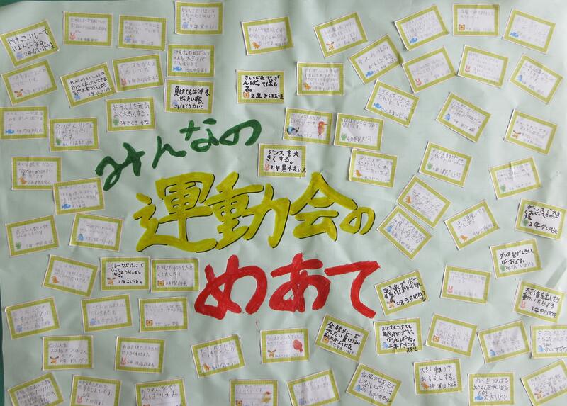宮水小学校のすぐ目の前には、特別養護老人ホームの「青雲荘」があります。総合的な学習の時間などで交流をさせていただき大変お世話になっています。いつも運動会で応援をしてくださっているので、子どもたちからも自分の目標を書いたメッセージを送ることにしました。