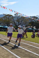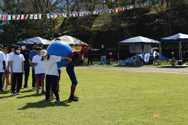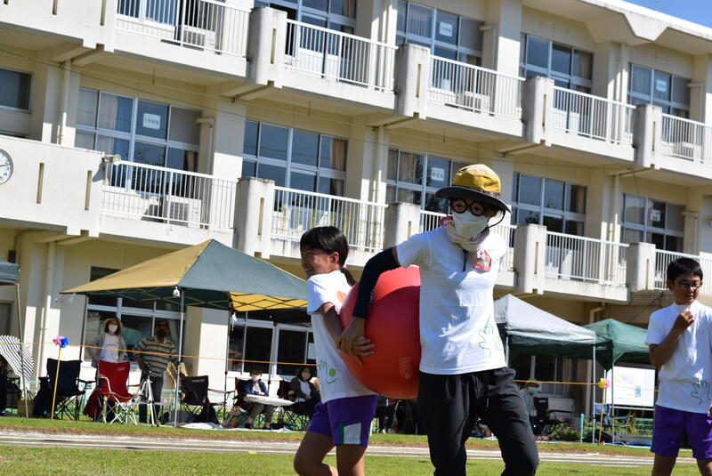 大玉を親子で運び、くじに書かれた方法でまた戻ってくる競技でした。「腕を組んでスキップ」「おんぶ」など、6年生になってからはなかなかしなくなったかもしれませんね。6年生も少し照れながら頑張っていました!