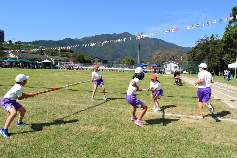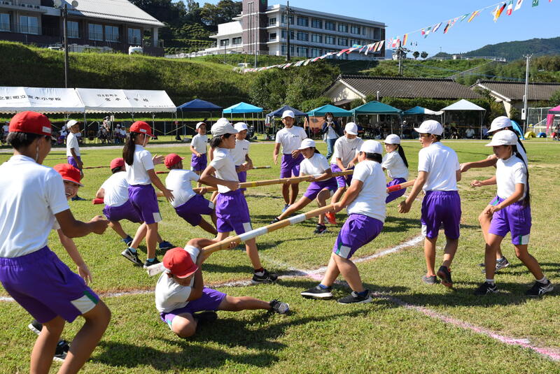5,6年生31名が、力を合わせて棒を取り合う競技です。高学年の力と力のぶつかり合いが見られ、とても迫力がありました。