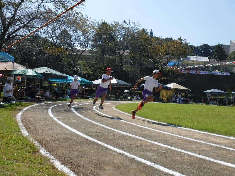 バトンをしっかり渡して少しでも速くゴールすることを目標に、全員が力を合わせて頑張っていました。