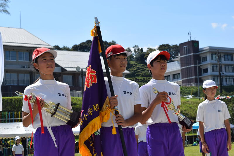 令和4年度宮水小学校秋季運動会は、優勝赤団、準優勝白団、応援賞赤団の結果に終わりました。約1か月間練習を重ねてきた子どもたちの頑張りに大きな拍手を送りたいと思います。声援を送ってくださった皆様、本当にありがとうございました。