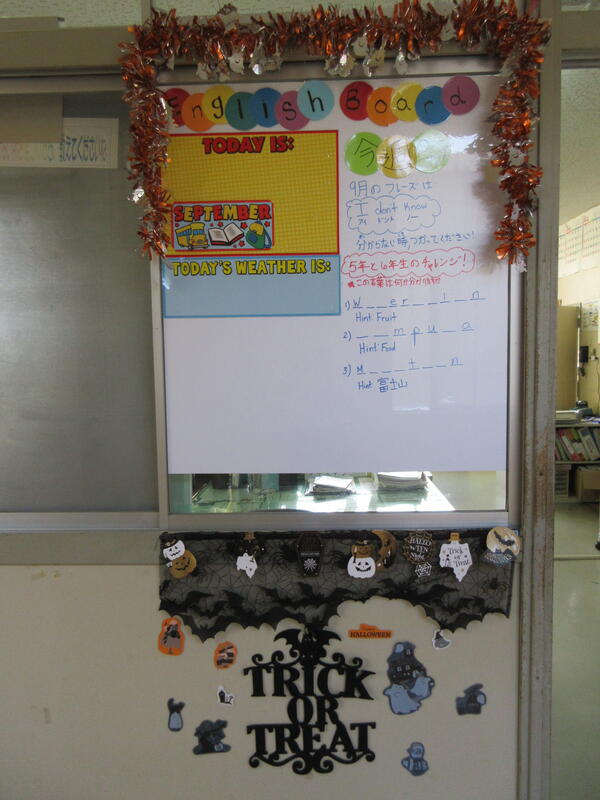 もうすぐ9月も終わりますが、10月になるとアメリカではハロウィンのお祭りがあります。廊下の掲示もハロウィンの飾りが増えていました。子どもたちもこれを見るとウキウキすることでしょう。