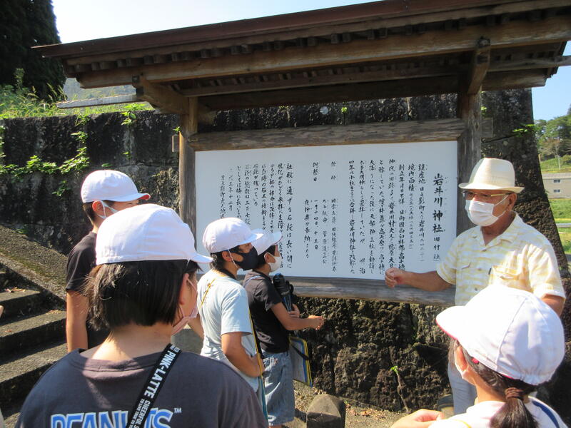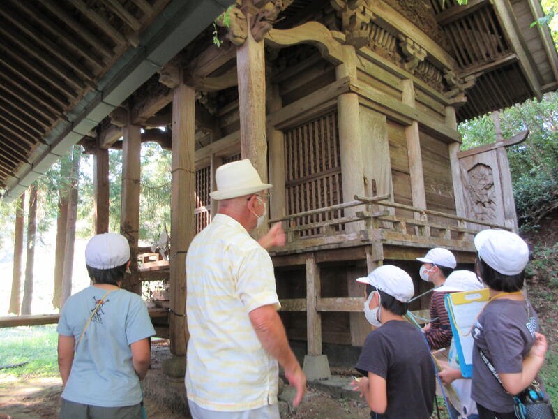 さらに、少し歩いて「大人神社」へ行きました。ここでは、以前大人歌舞伎を踊っていたステージのような場所がありました。また、大人という地名の由来についても教えていただきました。