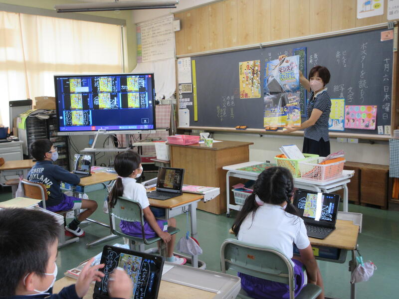 3時間目に4年生教室で研究授業を行いました。社会科の学習で、宮崎県の先人たちについて調べて発表をするという内容です。
