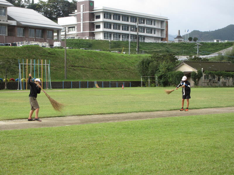昼休み後、掃除が始まってすぐの時間に放送が入りました。『地震です。地震です。(警報)』『揺れが収まりましたが、もう一度大きな揺れが来る恐れがあります。各自、自分のいる場所から直ちに運動場に避難してください。』