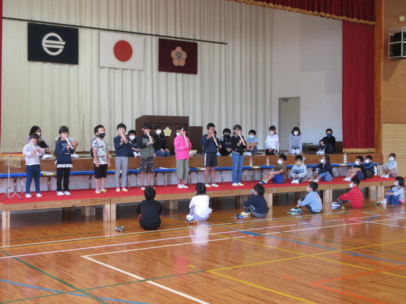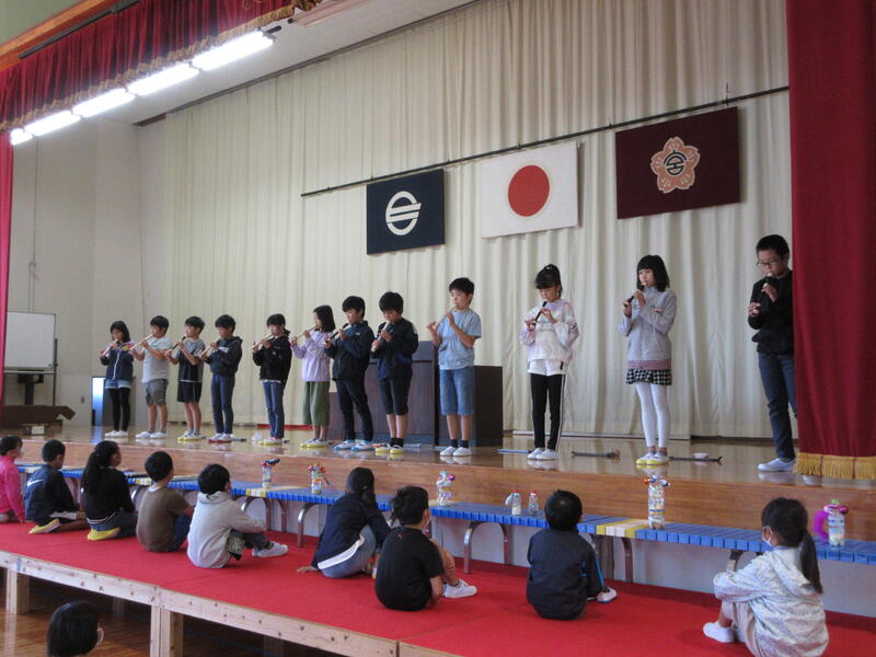 5,6年生の合奏は、練習のときよりもさらにレベルアップした発表ができたのではないかと思います。リズムや音の大きさなどに気を付けながら、心を1つにして演奏をしていました。