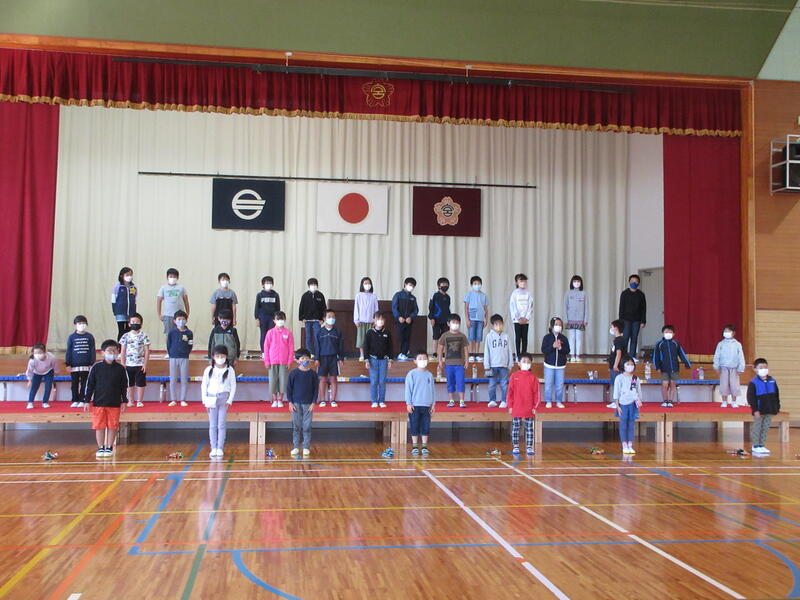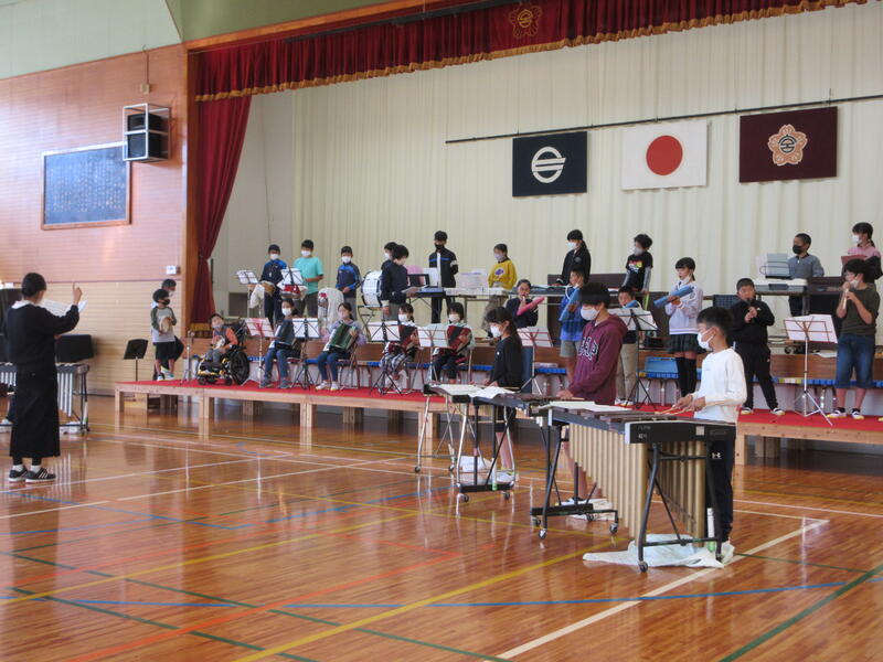 来週の金曜日(28日)に、町小中音楽祭が行われます。いよいよ1週間後にせまり、体育館では1~4年生が仕上げの練習をしていました。