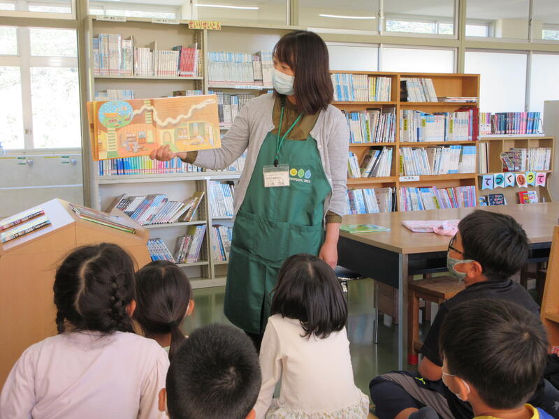 毎週木曜日は、図書活動推進員の戸髙さんが来校される日です。今日の4時間目は、1年生に読み聞かせをしてくださっていました。