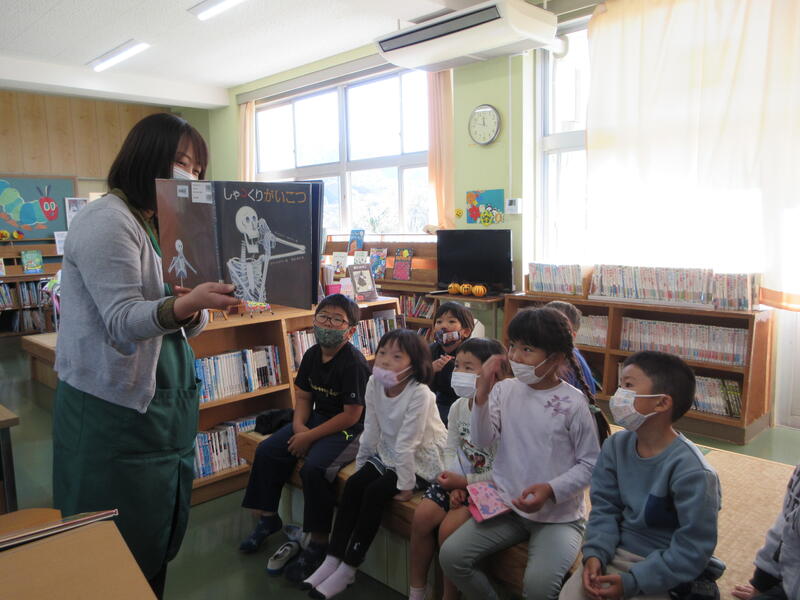 2冊目は、「しゃっくりがいこつ」というお話です。「え?がいこつがしゃっくりするの?」と、読む前から子どもたちも頭の中には、はてなマーク???がたくさんでした。不思議なお話に子どもたちも喜んでいました。